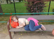 o zgrozo ! to studzenie skończyło się przemoczonymi butami i mokrymi spodniami! Przegonił nas paw, który nie bał się użyć dzioba strosząc piękne pióra! Ostatecznie odpoczeliśmy przy pysznych lodach po znakomitym obiedzie